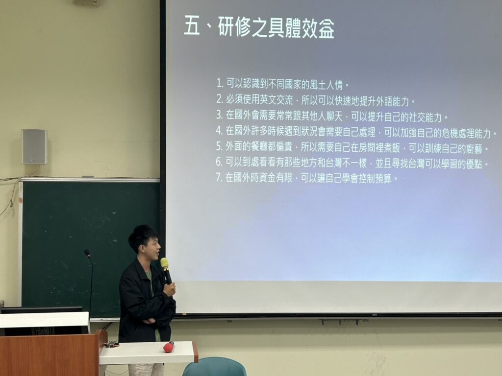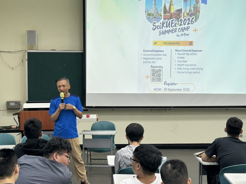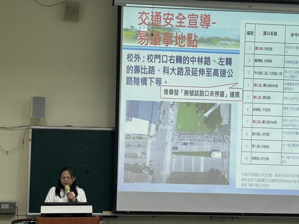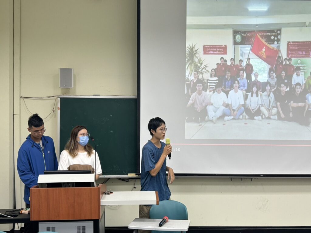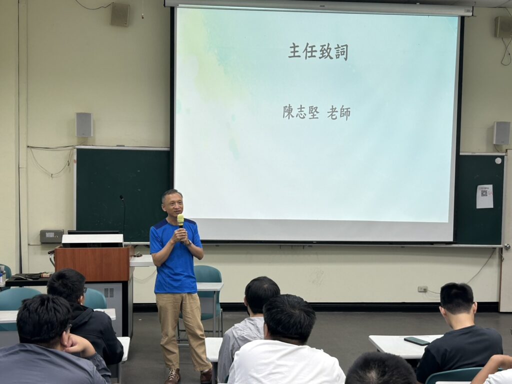 會議開始由系教官進行宣導,提醒同學們務必遵守交通規則,並提高警覺以防範詐騙事件,呼籲學生維護自身安全。隨後,系主任再度強調交通安全的重要性,期望同學養成良好的交通習慣。同時,也向師生介紹泰國農業大學(Kasetsart University)即將舉辦的冬令營活動,鼓勵同學把握機會參與,拓展國際視野。